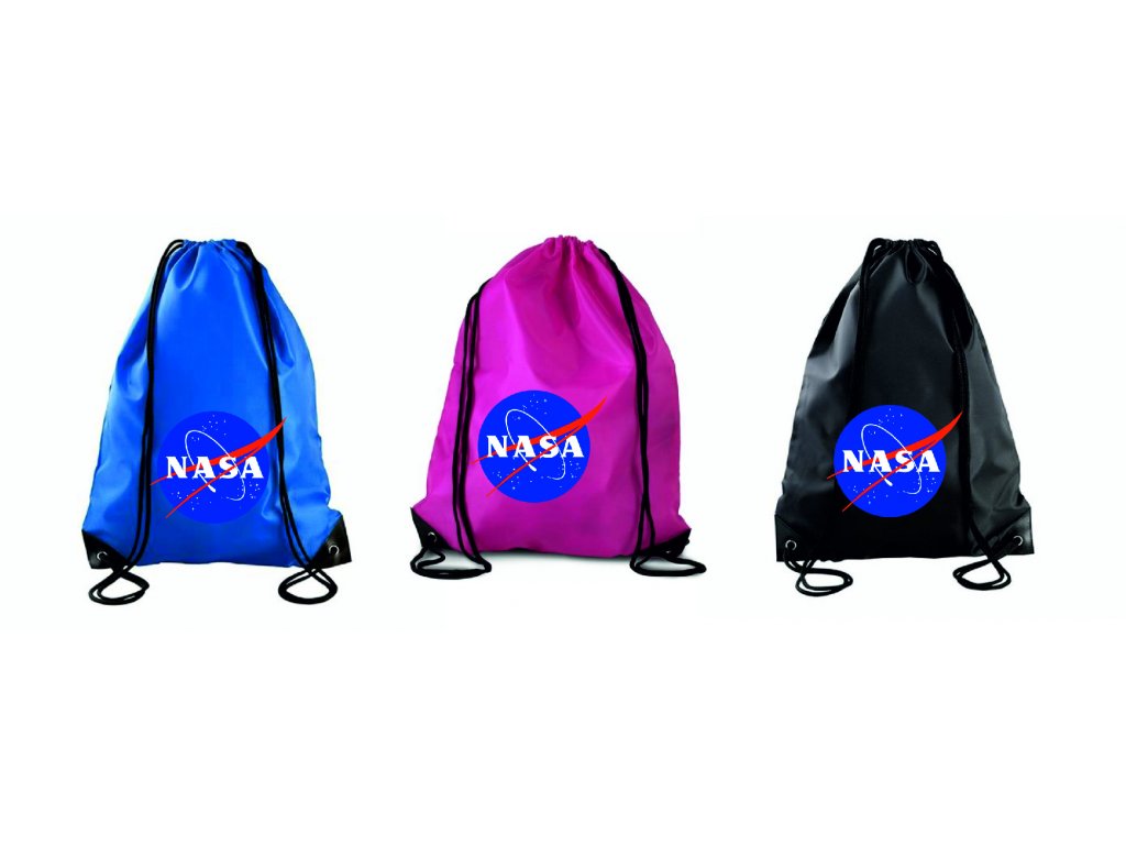 Stahovací batoh je potištěn logem NASA, můžete ho vzít