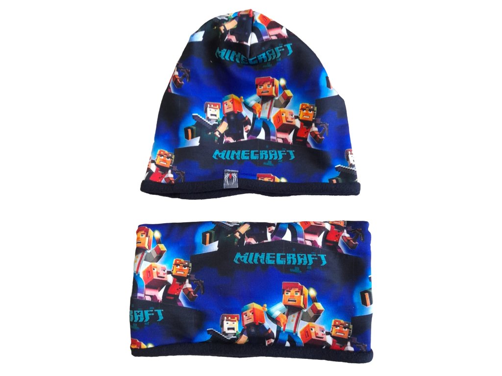 Čepice Minecraft s nákrčníkem zimní 027