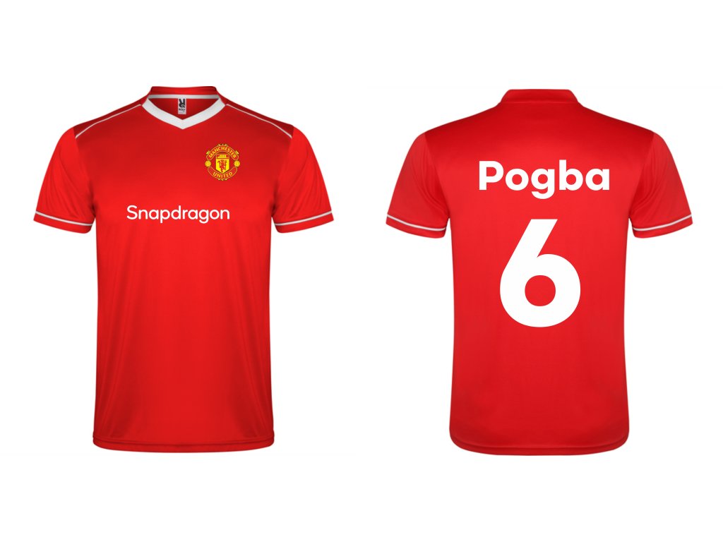 - Číslo a Jméno: Na zadní straně dresu je velké číslo 6, které identifikuje Paula Pogbu jako hráče. Nad číslem je umístěno jeho příjmení "POGBA" v kontrastní barvě, obvykle bílé nebo černé, čímž se zvyšuje čitelnost.
