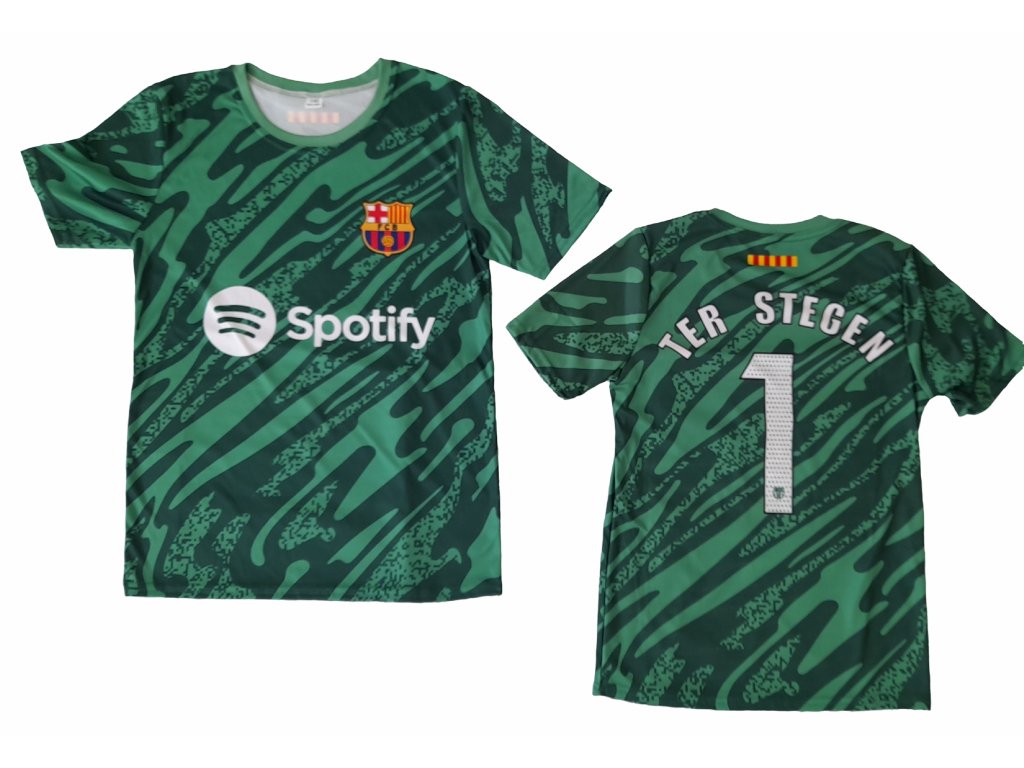 ## Design a vzhled - **Barva:** Výrazná brankářská barevná varianta (typicky v odstínech zelené, černé nebo oranžové - liší se podle sezóny) - **Číslo a jméno:** Dres obsahuje jméno "TER STEGEN" a jeho číslo "1" na zádech - **Logo a sponzoři:** - Tištěné logo FC Barcelona na levé straně hrudi - Logo hlavního sponzora uprostřed dresu - Případná další sponzorská loga dle aktuální sezóny - **Detaily designu:** - Unikátní brankářský vzor pro lepší vizuální distrakci útočníků - Barevné akcenty v klubových barvách (granátová a modrá) - La Liga patch na rukávu ## Materiál a technologie - **Hlavní materiál:** Pokročilá polyesterová tkanina s technologií Dri-FIT (nebo ekvivalent) - **Složení:** 100% recyklovaný polyester - **Technologické prvky:** - Odvádění potu a rychlé schnutí - Prodyšný materiál s ventilačními panely - Strečový materiál umožňující maximální pohodlí**Rukávy:** Dlouhé rukávy s elastickými manžetami - **Límec:** Kulatý nebo do V s kontrastním lemováním - **Spodní lem:** Mírně prodloužený zadní díl pro lepší pokrytí při pohybu ## Velikosti a fit - **Dostupné velikosti:** S, M, L, XL, XXL (případně dětské velikosti) - **Typ fitu:** Stadium fit (fanouškovsky střih) nebo Player fit (profesionální střih jako nosí Ter Stegen) - **Měření:** - Hrudník: Detailní rozměry podle velikostní tabulky - Délka: Standardní nebo mírně prodloužená ## Autentické prvky - **Autentifikační štítek:** Holografická nálepka potvrzující pravost produktu - **Speciální detaily:** Možné speciální prvky jako podpis Ter Stegena nebo limitovaná edice ## Údržba - **Praní:** Prát naruby při 30°C - **Sušení:** Nesušit v sušičce - **Žehlení:** Žehlit naruby na nízkou teplotu, nežehlit přes potisk - **Další doporučení:** Nepoužívat bělidlo, neprat chemicky