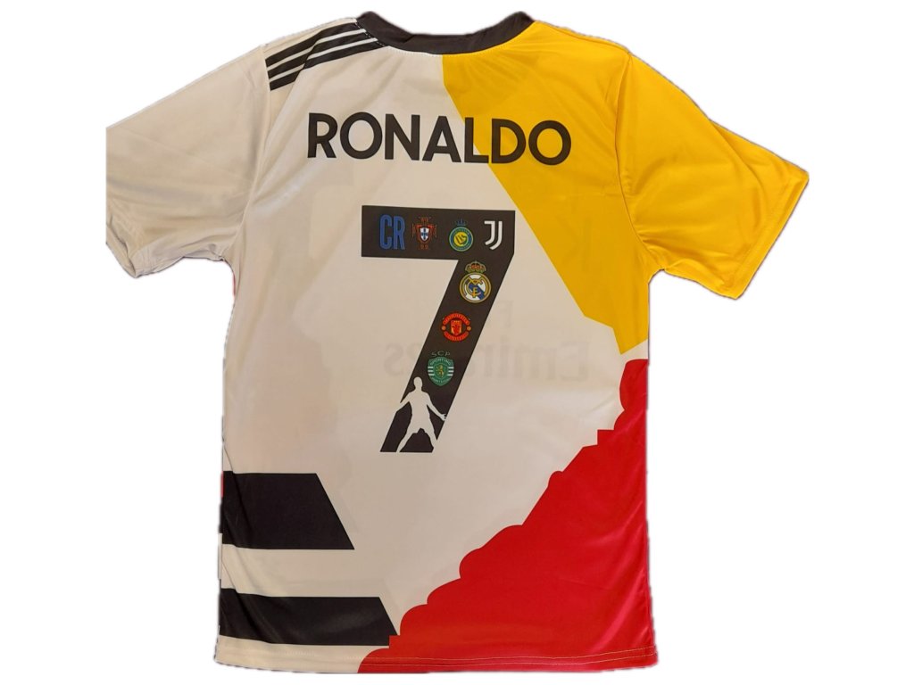 Dres Ronaldo Legend kombinuje ikonický vzhled s moderními technickými vlastnostmi pro maximální komfort při pohybu. Vyroben je z lehkého polyesterového materiálu s texturovanou strukturou, která zlepšuje cirkulaci vzduchu a rychle odvádí pot od těla. Střih je atletický (slim/regular fit podle varianty) tak, aby dres lichotil postavě a současně umožňoval volný pohyb během tréninku nebo zápasu. Na zádech je výrazný potisk RONALDO a číslo 7 v odolné technologii potisku (sublimace nebo transfer), na předním panelu lze umístit místo pro klubový znak nebo stylizovaný emblem (u neoficiálních verzí používejte placeholder). Límec a manžety jsou detailně zpracované, boční síťované panely zvyšují ventilaci. Ideální pro fanoušky, sběratele i amatérské hráče, kteří chtějí dres s legendárním jménem. Seznam hlavních vlastností (rychlý přehled) - Motiv: jméno „RONALDO“ a číslo „7“ (Ronaldo Legend) - Střih: atletický (slim/regular fit) — varianty pro muže, ženy i děti - Materiál: technický polyester (rychleschnoucí, odvádějící pot) - Ventilace: síťované boční panely / prodyšné zóny - Potisk: odolný sublimovaný/transferový tisk jména a čísla
