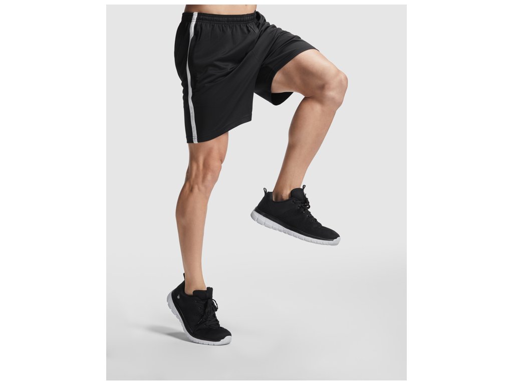 Dětské krátké sportovní bermudy s obrázkem Messiho. Postranní kapsy na zip. Elastický pas se stahovací vnitřní šňůrkou v kontrastní barvě. Kontrastní postranní pruh. Odnímatelný štítek. Funkční látka. Dostupné i v dospělých velikostech.