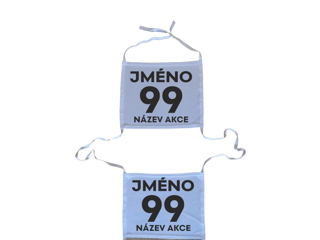 📏 **Standardní rozměr**: 29 x 23 cm- 🎨 **Materiál**: Pevný textil polyester - 🔢 **Čitelný tisk**: Velká černá čísla pro snadnou identifikaci - 🎽 **Snadné upevnění**🌧️ **Odolnost**: Vydrží i náročné povětrnostní podmínky - ⚡ **Univerzální použití**: Vhodné pro běh, cyklistiku, triatlon i další sporty ## Výhody zavazovacího systému: ✅ **Rychlé nasazení** – závodník si číslo snadno přiváže sám ✅ **Bezpečné držení** – šňůrky zajistí stabilitu bez použití špendlíků ✅ **Pohodlné** – netlačí ani neodírá pokožku ✅ **Opakovaně použitelné** – vhodné i pro tréninkové účely ✅ **Ekonomické řešení** – skvělý poměr ceny a kvality ## Možnosti personalizace: - 🏢 Potisk loga sponzorů - 🎨 Vlastní barevné provedení - 📝 Doplňující texty (název akce, datum, kategorie) - 🔢 Číselné řady dle vašich požadavků ## Pro jaké akce jsou vhodná? - Běžecké závody (5K, 10K, půlmaraton, maraton) - Cyklistické závody - Triatlonové akce - Orientační běhy - Školní sportovní dny - Firemní běhy a charitativní akce