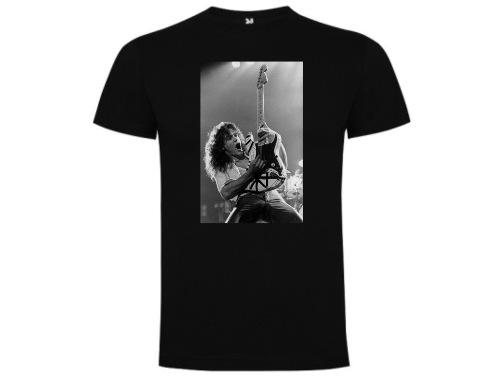 Stylové rockové tričko inspirované legendárním kytaristou Eddie Van Halen, ikonou hard rocku a spoluzakladatelem kapely Van Halen. Ideální kousek pro fanoušky kytarových riffů, 80s energie a nadčasového rockového stylu.